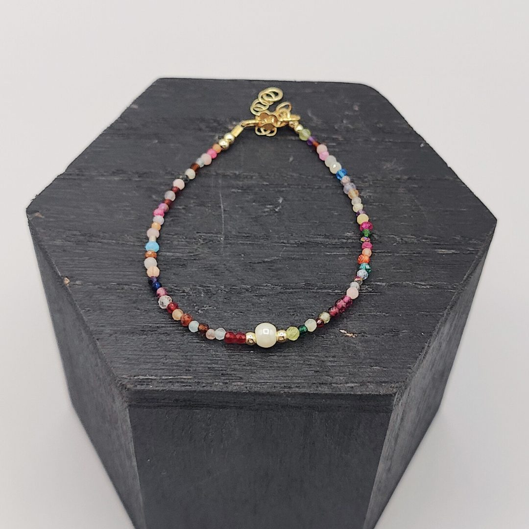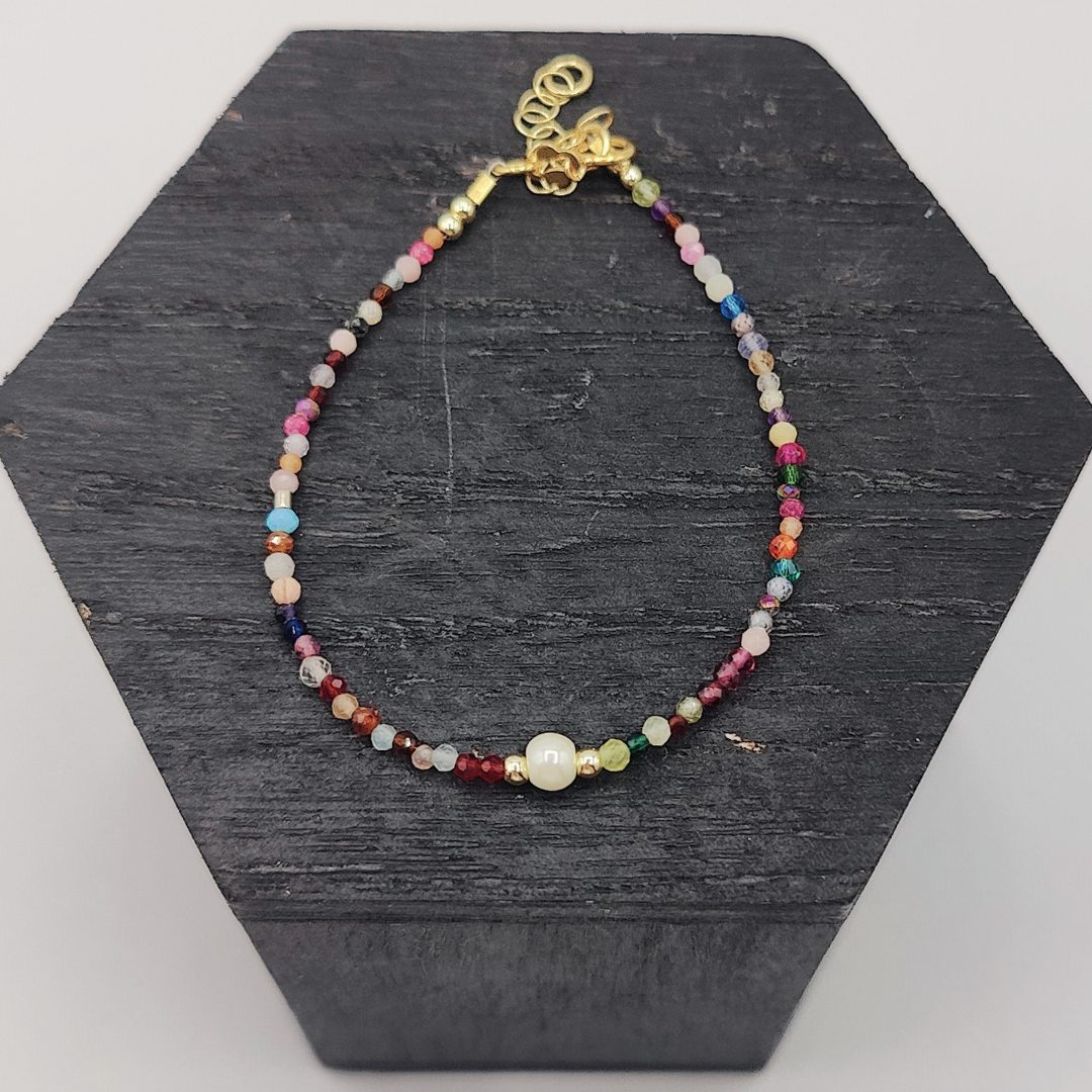 Pulsera de Plata Dorada con Piedras de Colores y una Perla