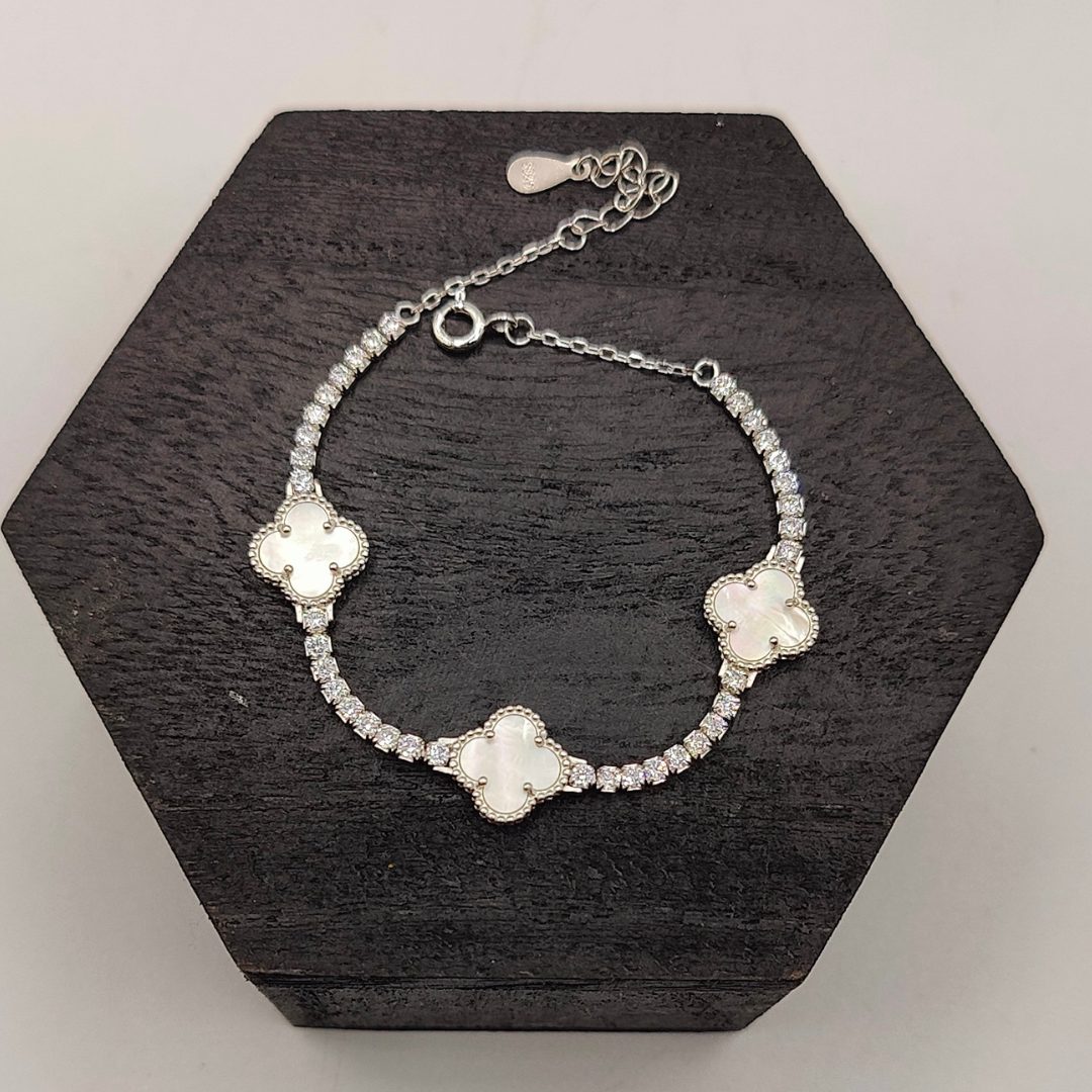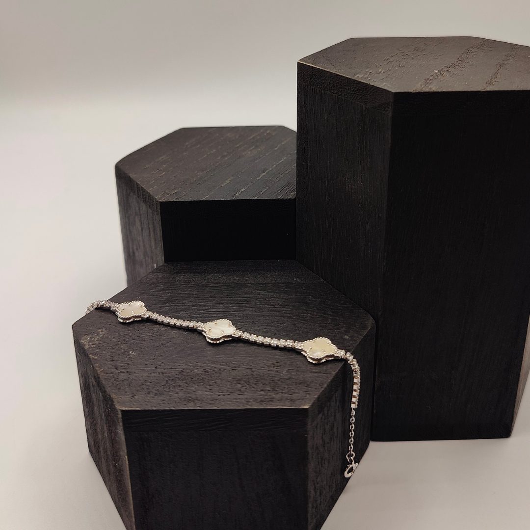 Esta elegante pulsera de plata estilo Riviera con 3 flores de nácar es una joya sofisticada y atemporal. El diseño, delicadamente elaborado, presenta tres hermosas flores de nácar que aportan un toque de frescura y luminosidad, mientras que la plata le da un acabado brillante y moderno. Perfecta para realzar cualquier look, ya sea para un evento especial o para añadir un toque de elegancia a tu estilo diario. ✨🌸