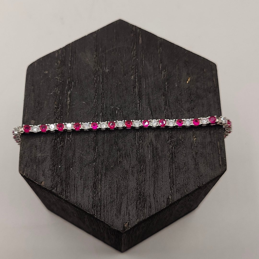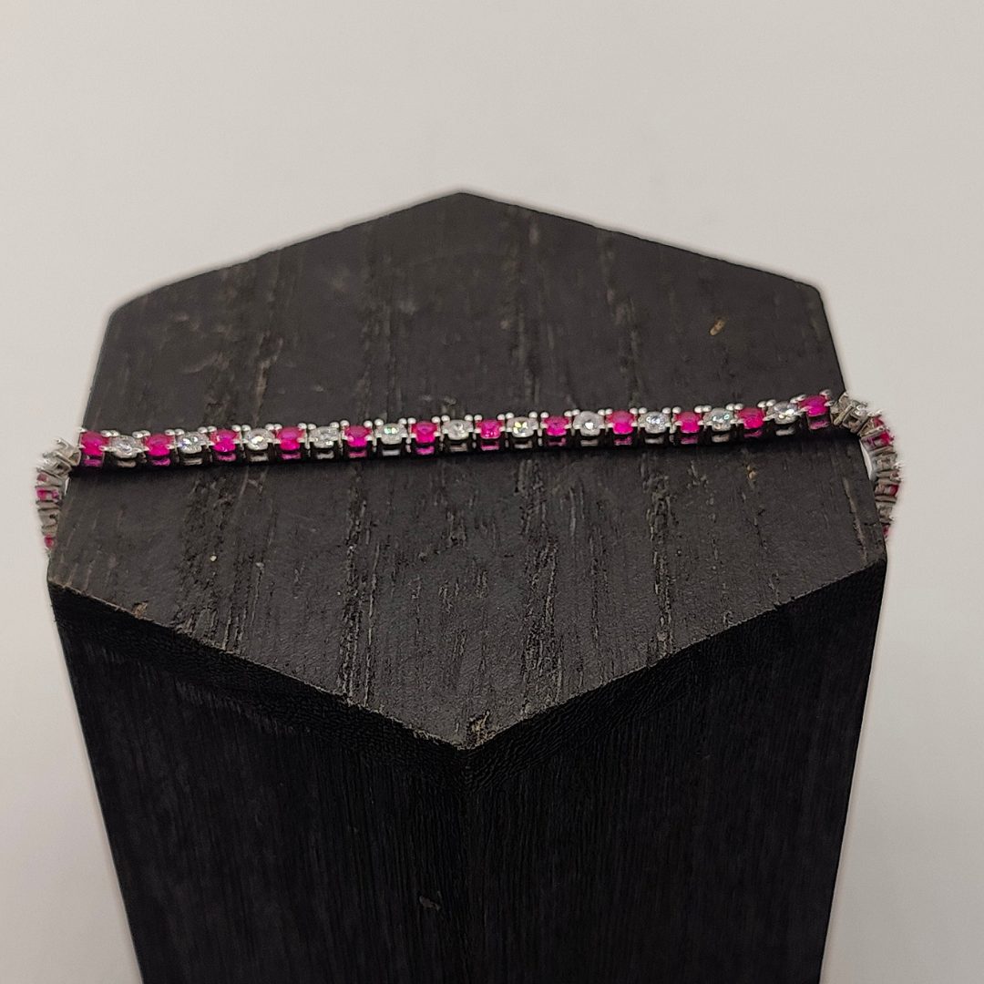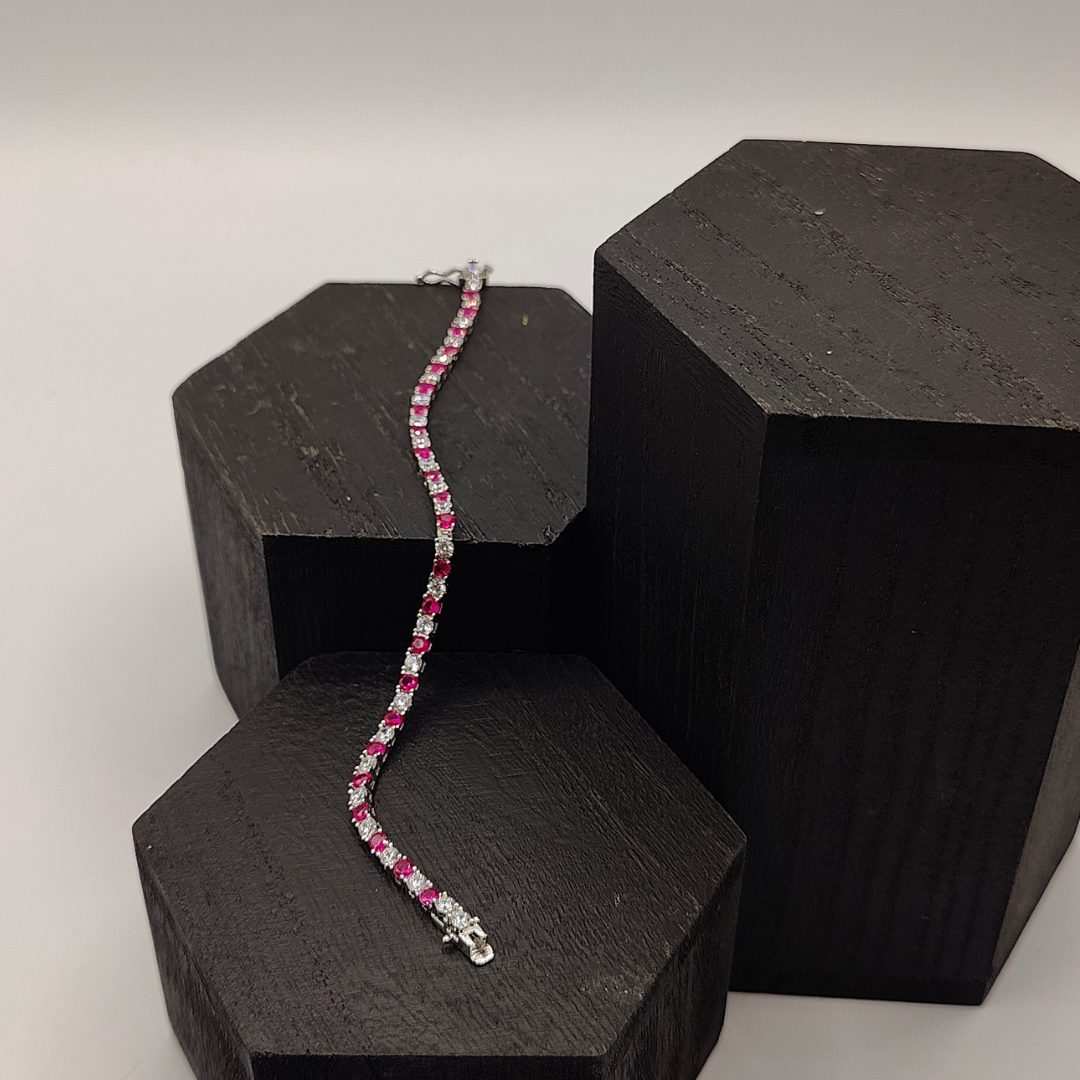 Pulsera de Plata Estilo Riviera con Circonitas Fucsias y Blancas