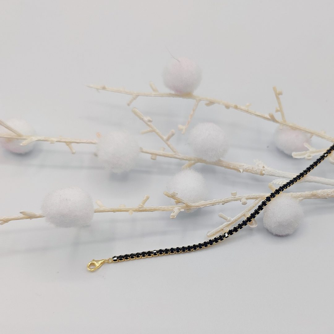 Pulsera Riviera con Circonitas Negras en Plata Dorada