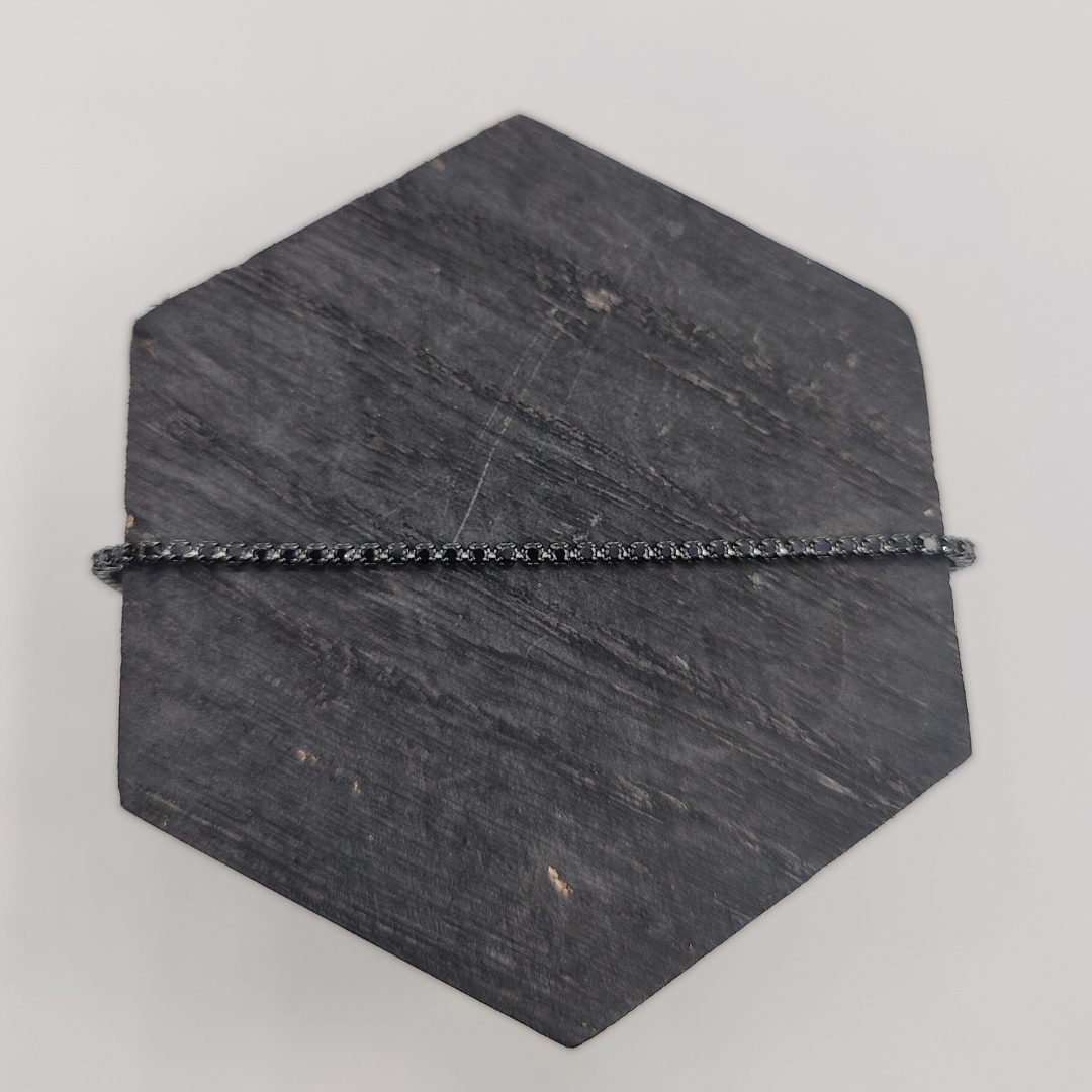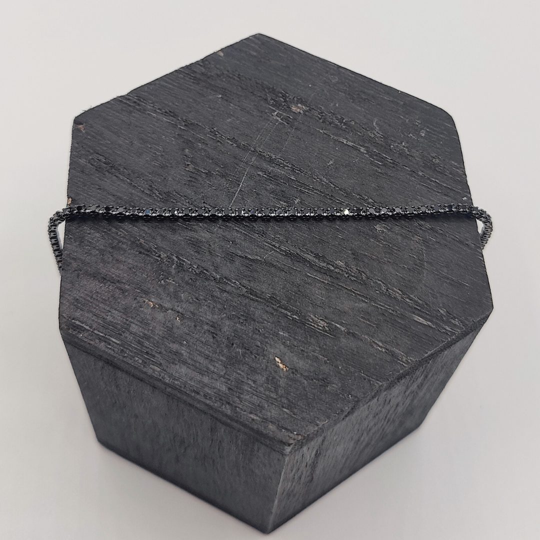 Con un diseño moderno y sofisticado, esta pulsera estilo Riviera de plata negra presenta una serie de circonitas negras que capturan la luz con cada movimiento. La combinación de la plata negra con las circonitas oscuras crea una pieza elegante y misteriosa, ideal para añadir un toque de contraste y glamour a cualquier look. Perfecta para quienes buscan una joya única, elegante y llena de estilo.