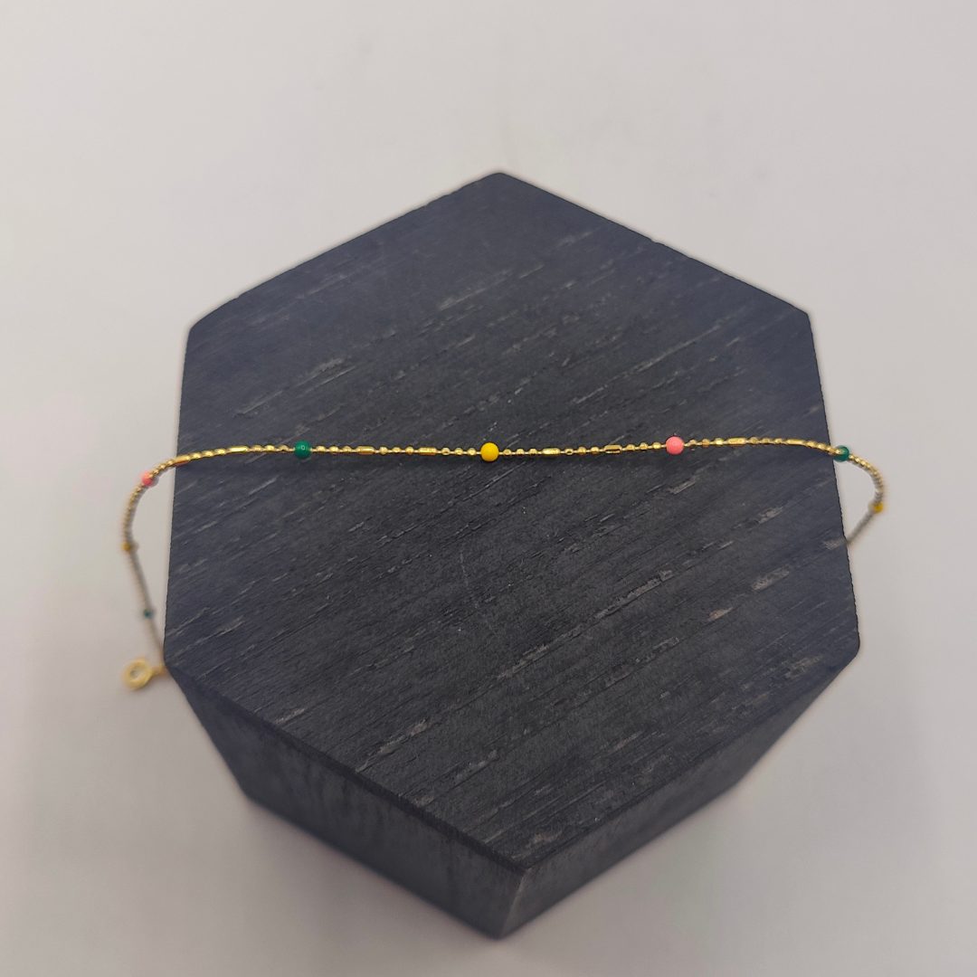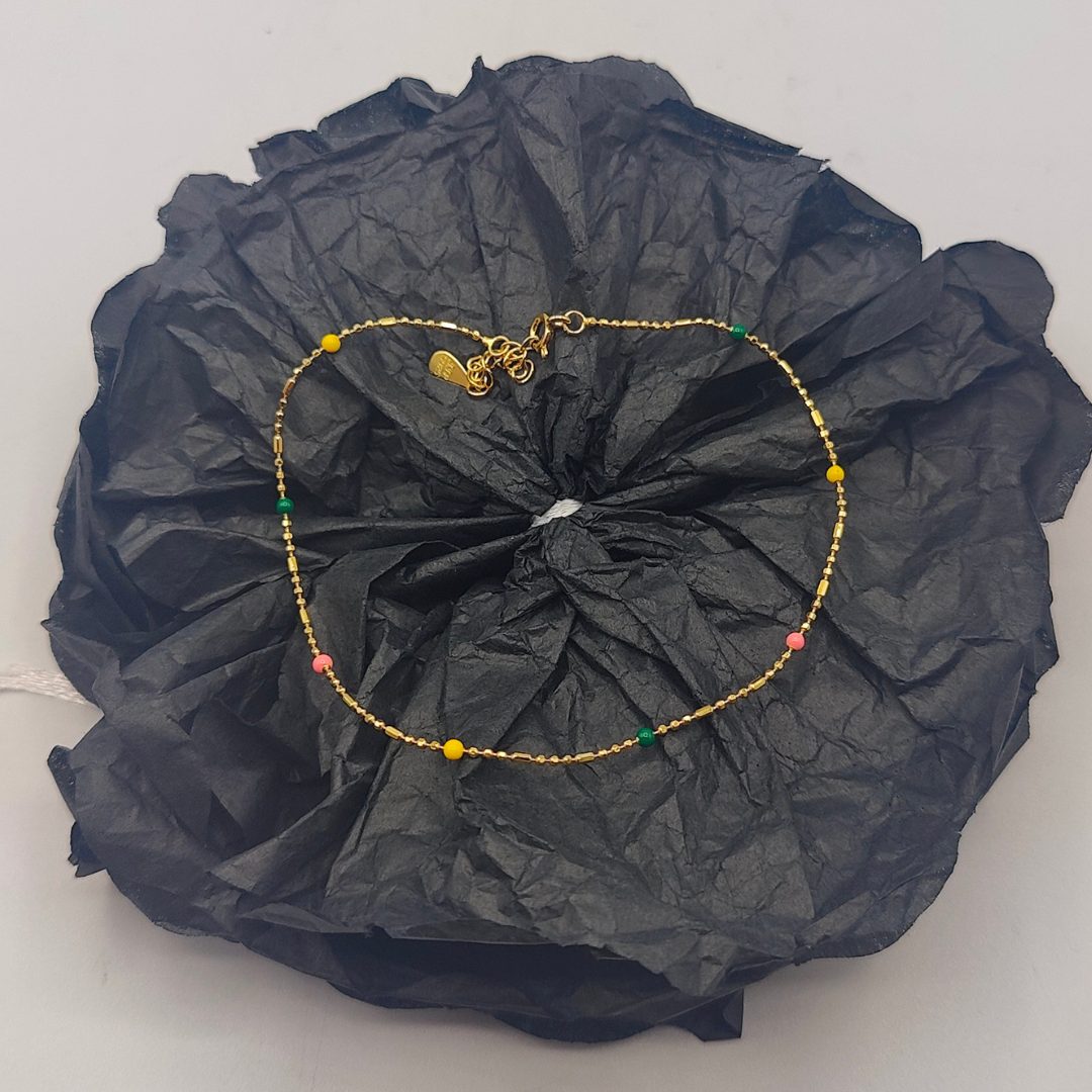 Tobillera de Plata Bañada en Oro con Bolitas de Colores