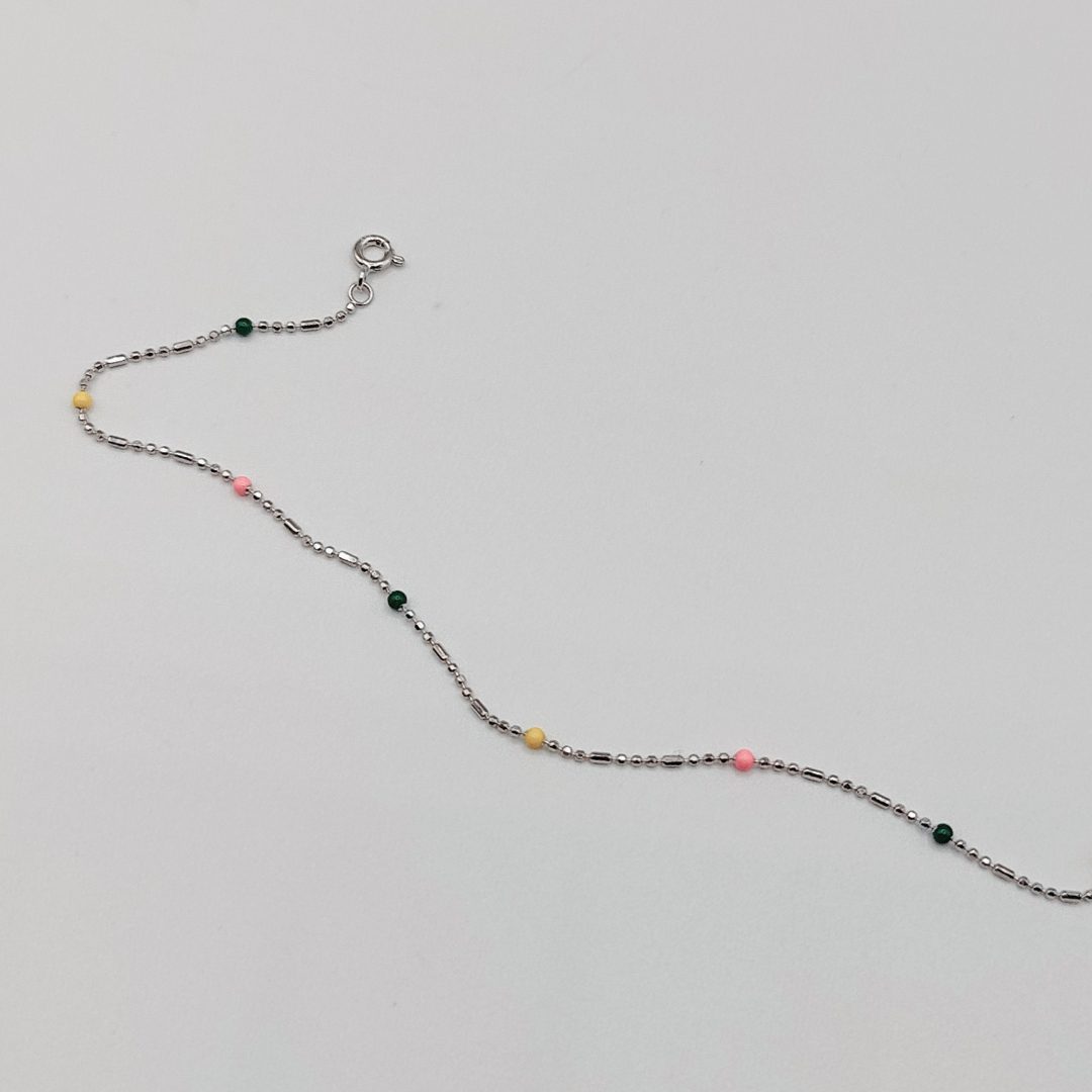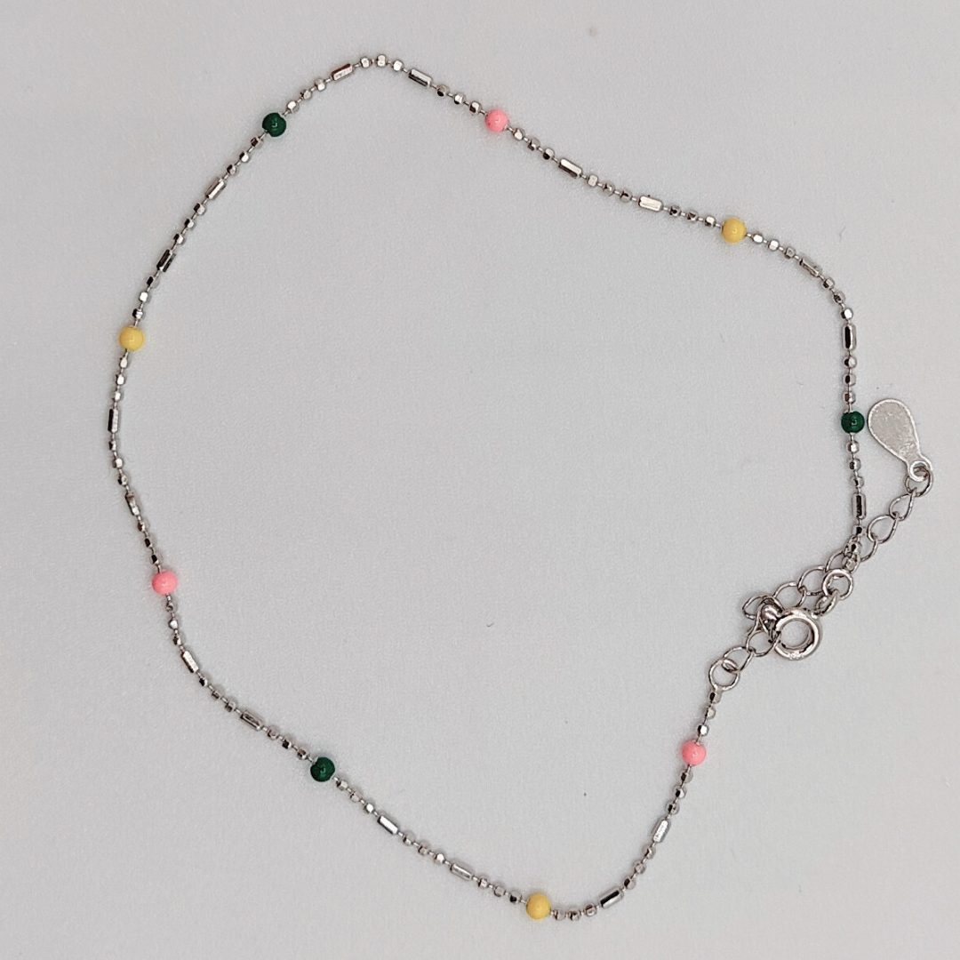 Añade un toque de frescura y estilo a tus pies con esta tobillera de plata de ley 925, adornada con barritas y bolitas esmaltadas en una variedad de colores vibrantes.