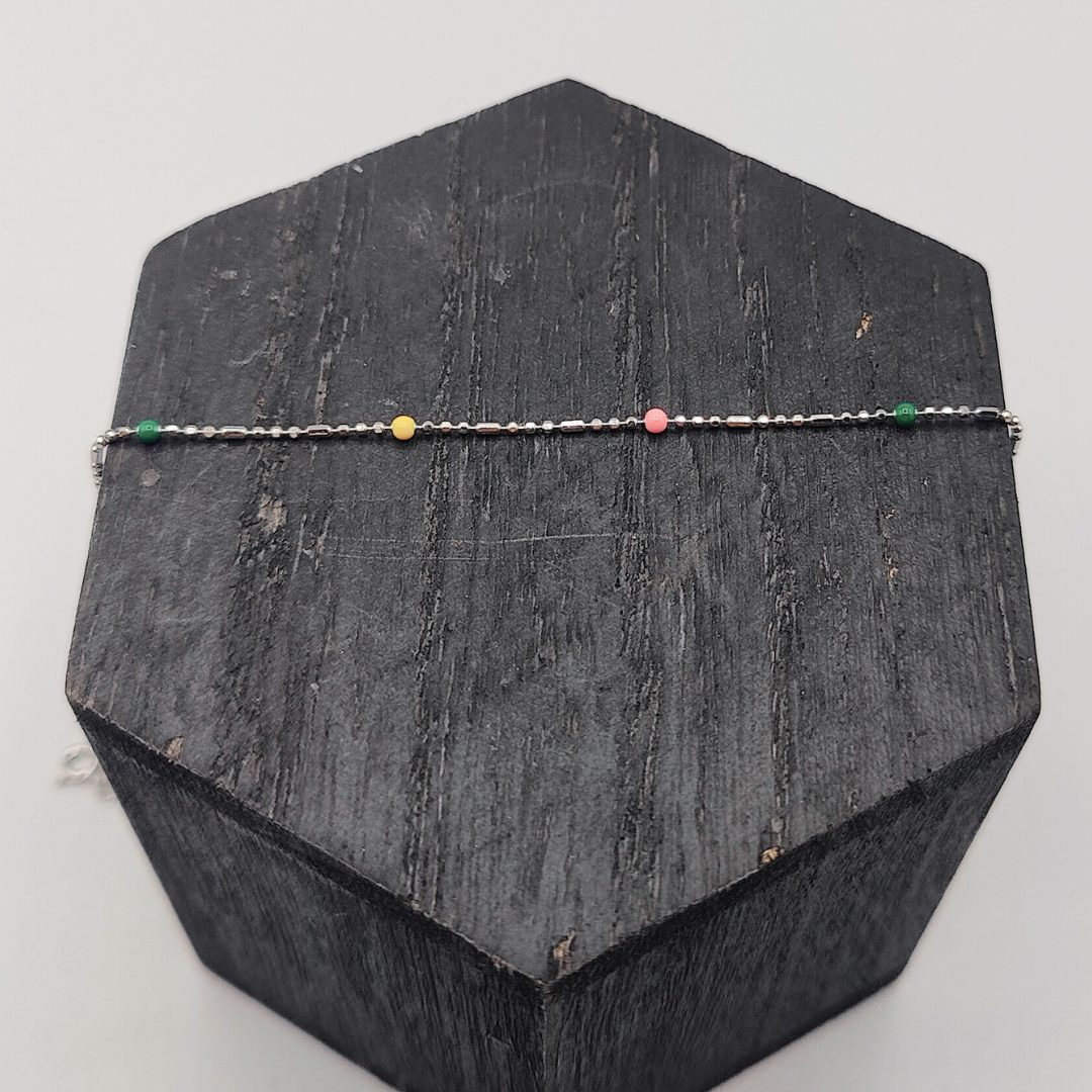 Tobillera de Plata con Barritas y Bolitas Esmaltadas de Colores