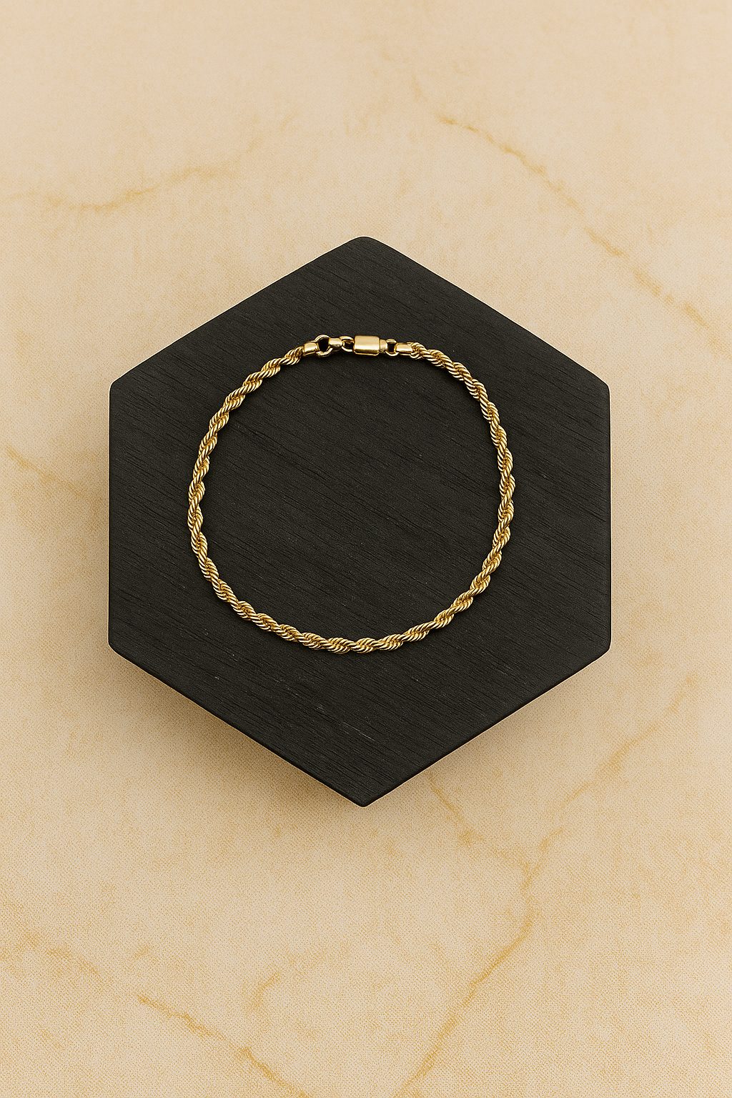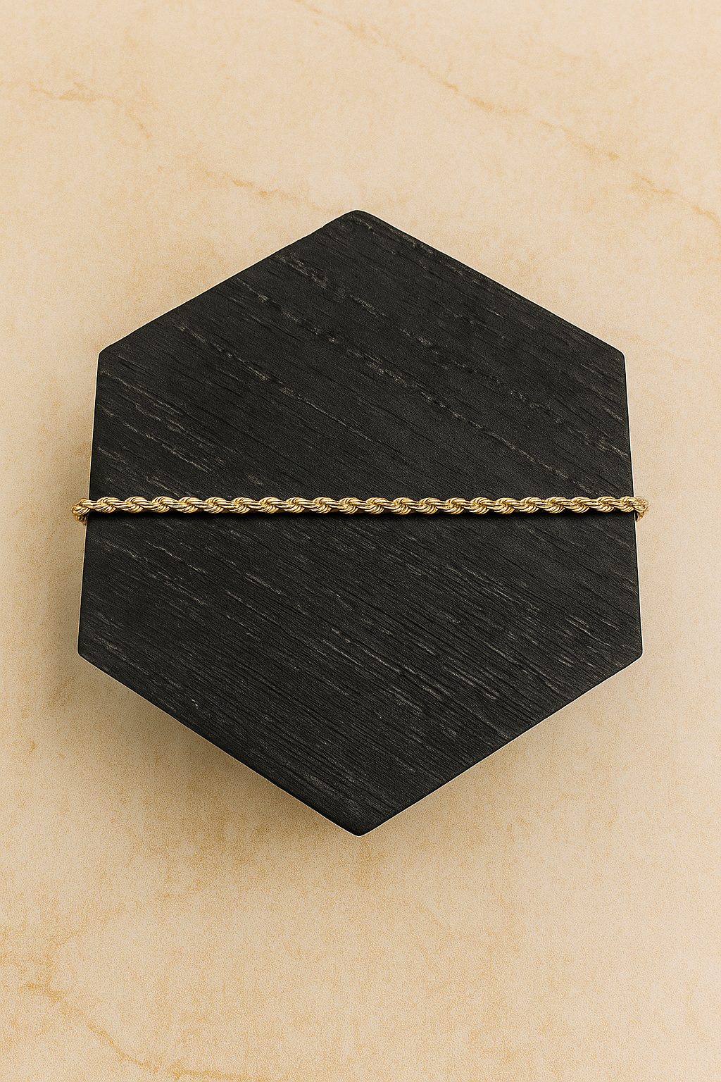 Con un diseño fino de 2 mm de grosor y 19 cm de longitud, combina la ligereza con la resistencia propia del oro amarillo de 18k, ofreciendo un brillo cálido y duradero.